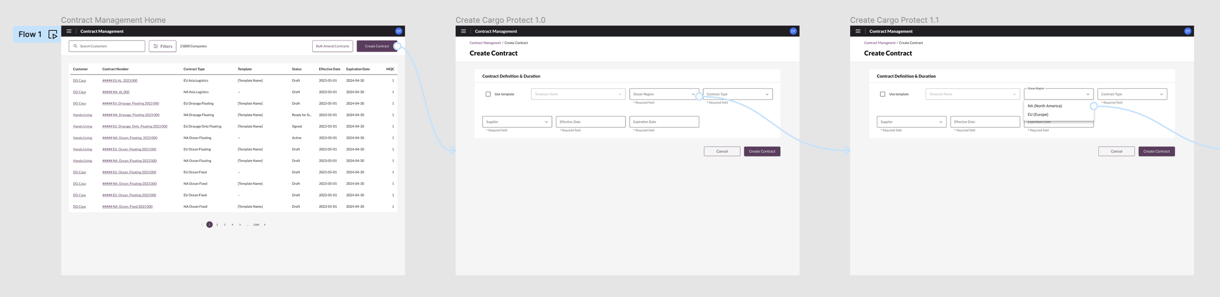 Balancing time constraints and technical feasibility, we ultimately opted for the MVP design that seamlessly integrated into the existing contract creation process. Here, abstract data and user flows were transformed into tangible design solutions for streamlining Cargo Protect contracts.