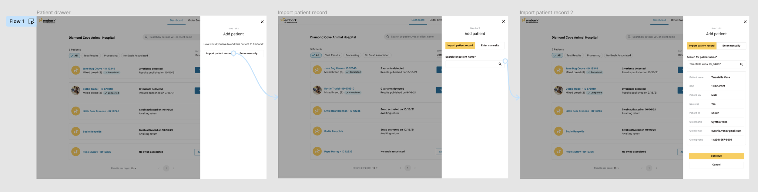 Ultimately, the proposed designs allow users to import patient information from an electronic medical record into the Embark dashboard. When results are ready, a genetic health summary is directly placed into that patient’s medical record in the PIMS.